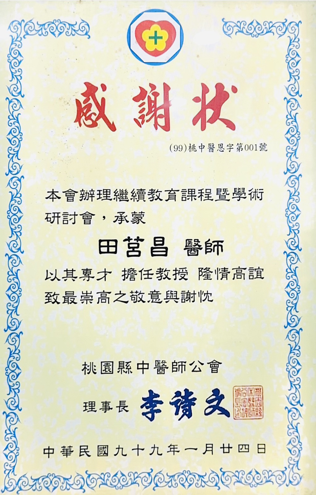 桃園縣中醫師公會 理事長李詩文