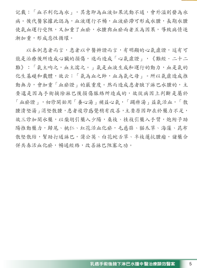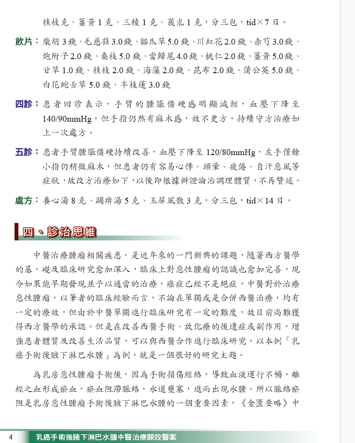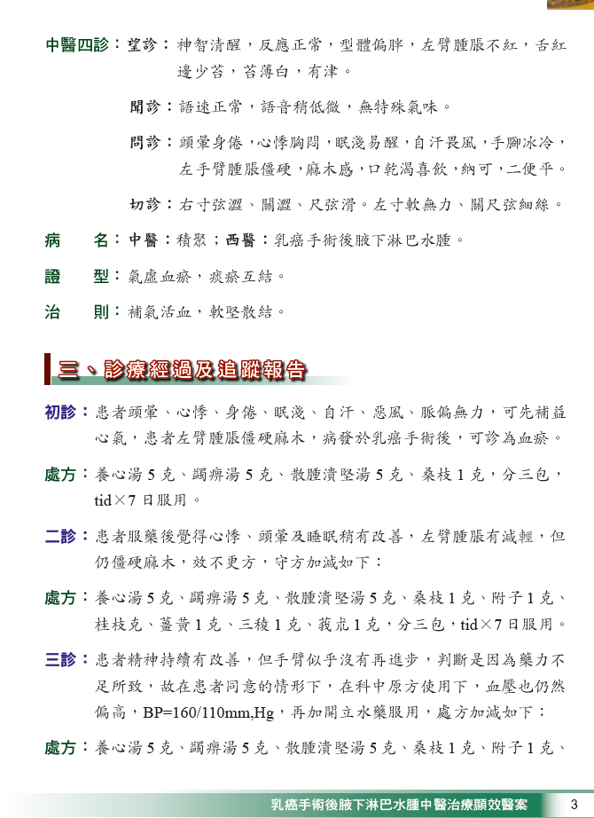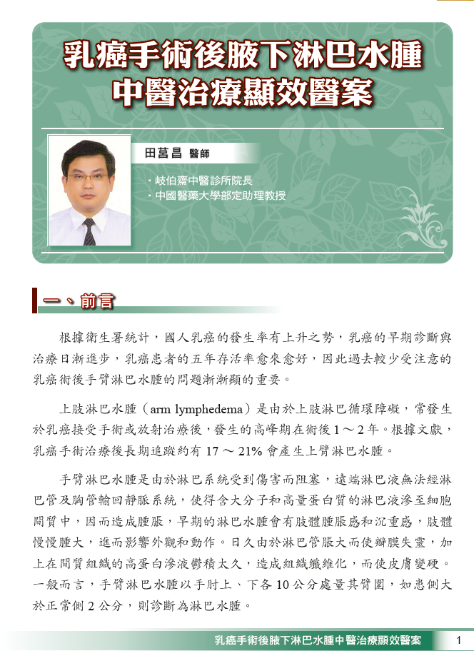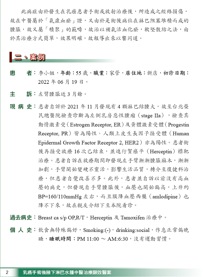 乳癌手術後腋下淋巴水腫 中醫治療顯效醫案