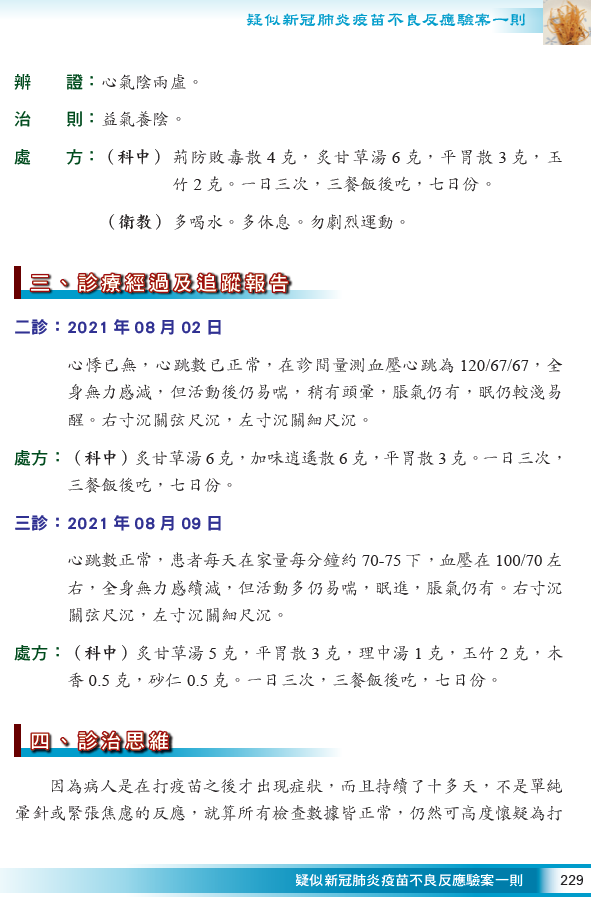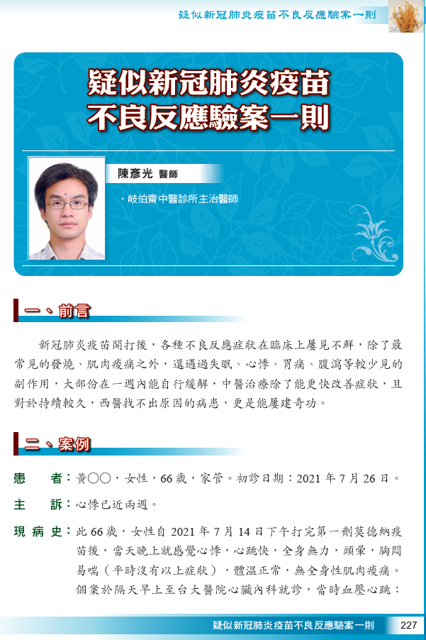 疑似新冠肺炎疫苗不良反應驗案一則