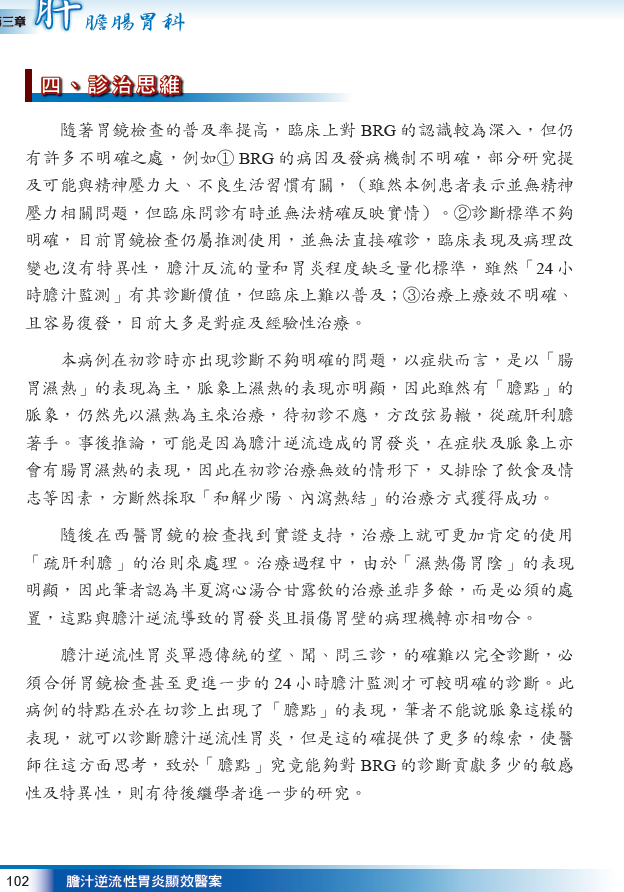 膽汁逆流性胃炎顯效醫案