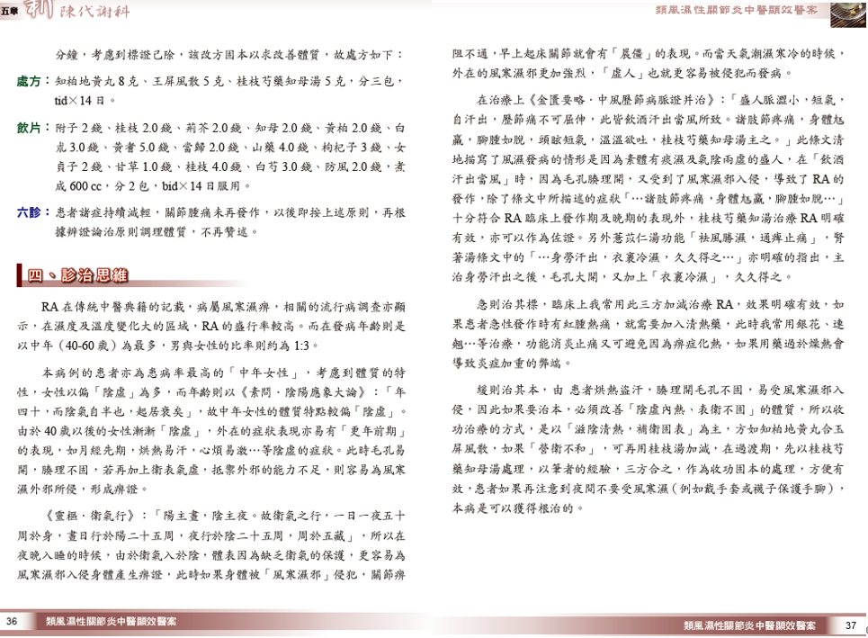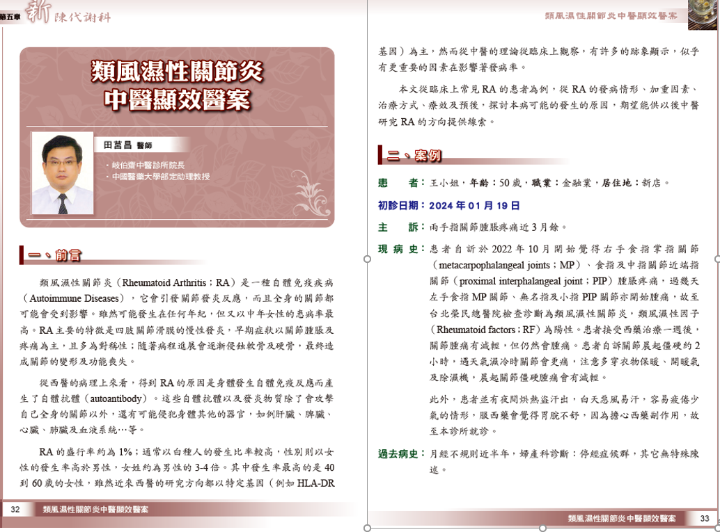 類風溼性關節炎中醫顯效醫案