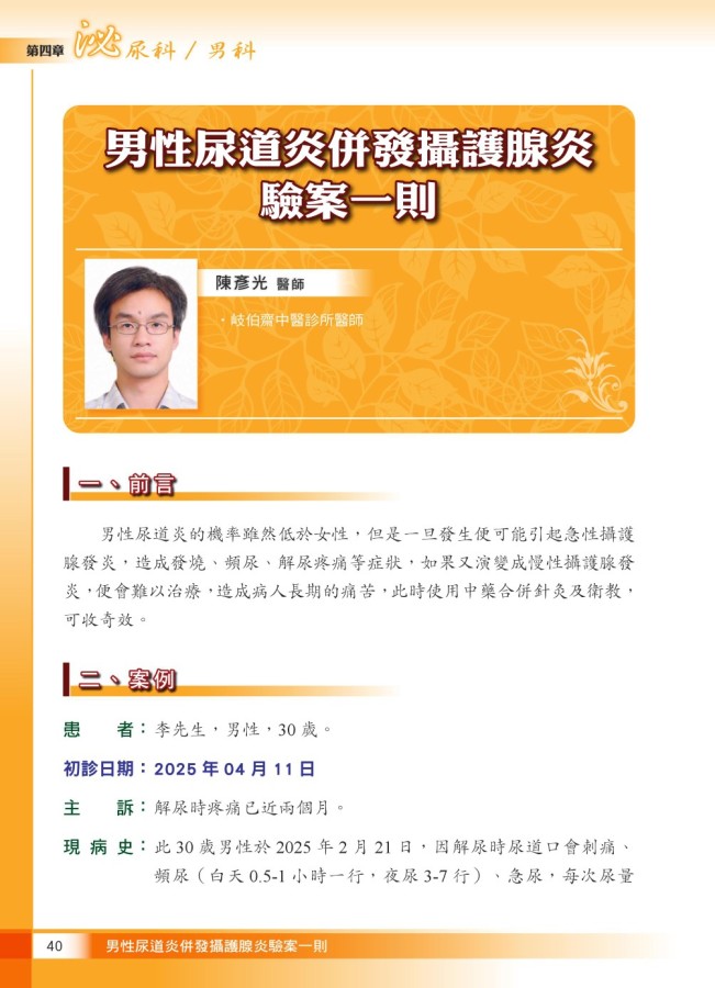 男性尿道炎併發攝護腺炎驗案一則- 陳彥光 醫師