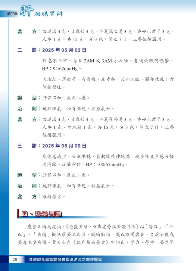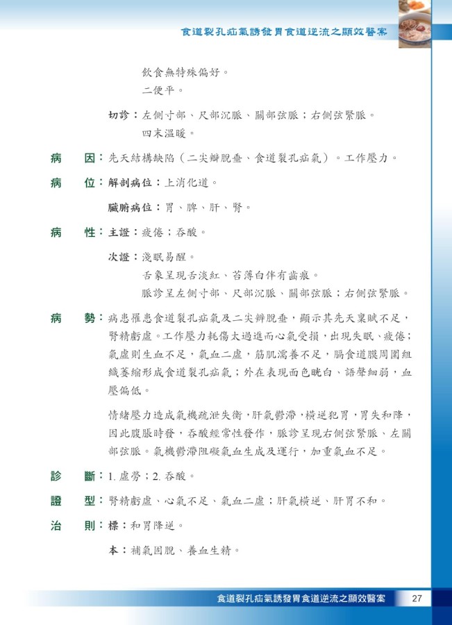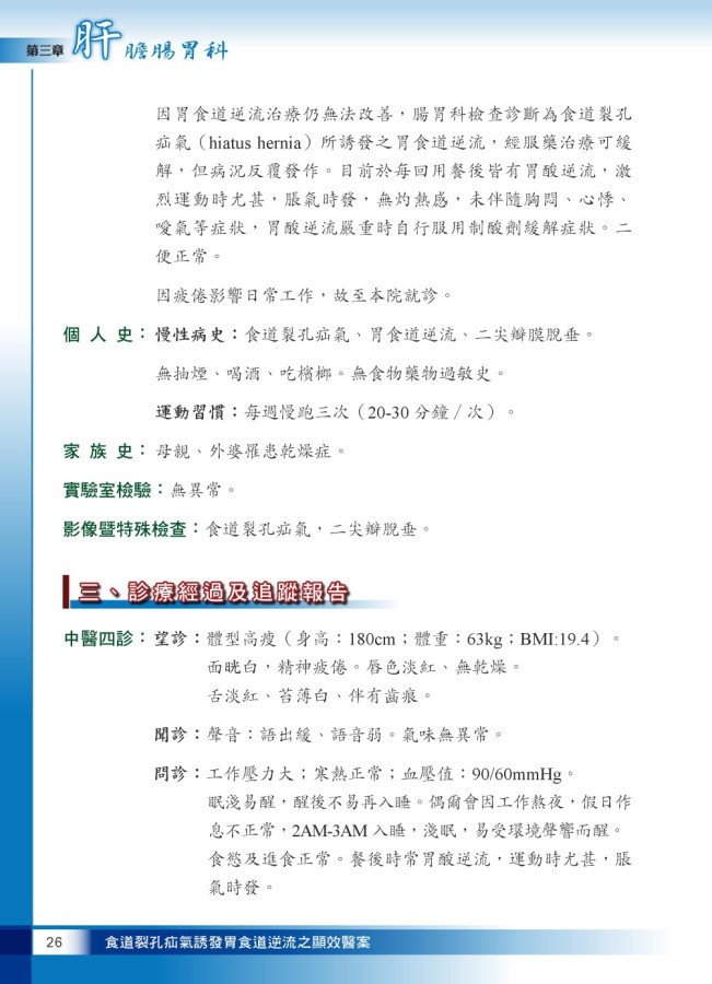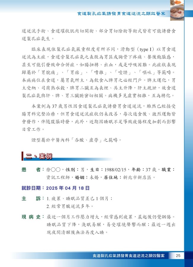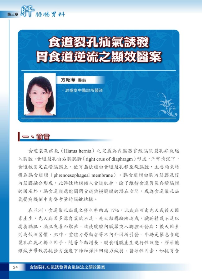 食道裂孔疝氣誘發胃食道逆流之顯效醫案